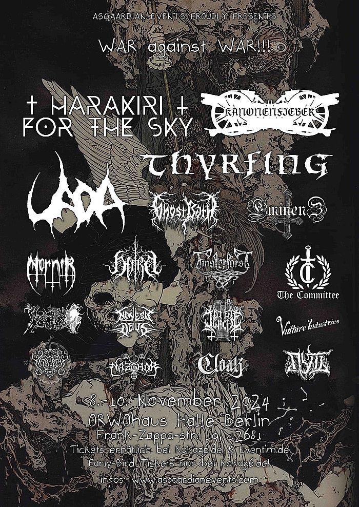 KANONENFIEBER, HARAKIRI FOR THE SKY, UADA, THYRFING, EMINENZ, GHOST BATH, HORN, THE COMMITTEE, SEAR BLISS, FINSTERFORST, NON EST DEUS, TOTENWACHE, VULTURE INDUSTRIES, INFERNO, ANTRISCH, EMBRACE THE DARKNESS, CLOAK, NAZGHOR